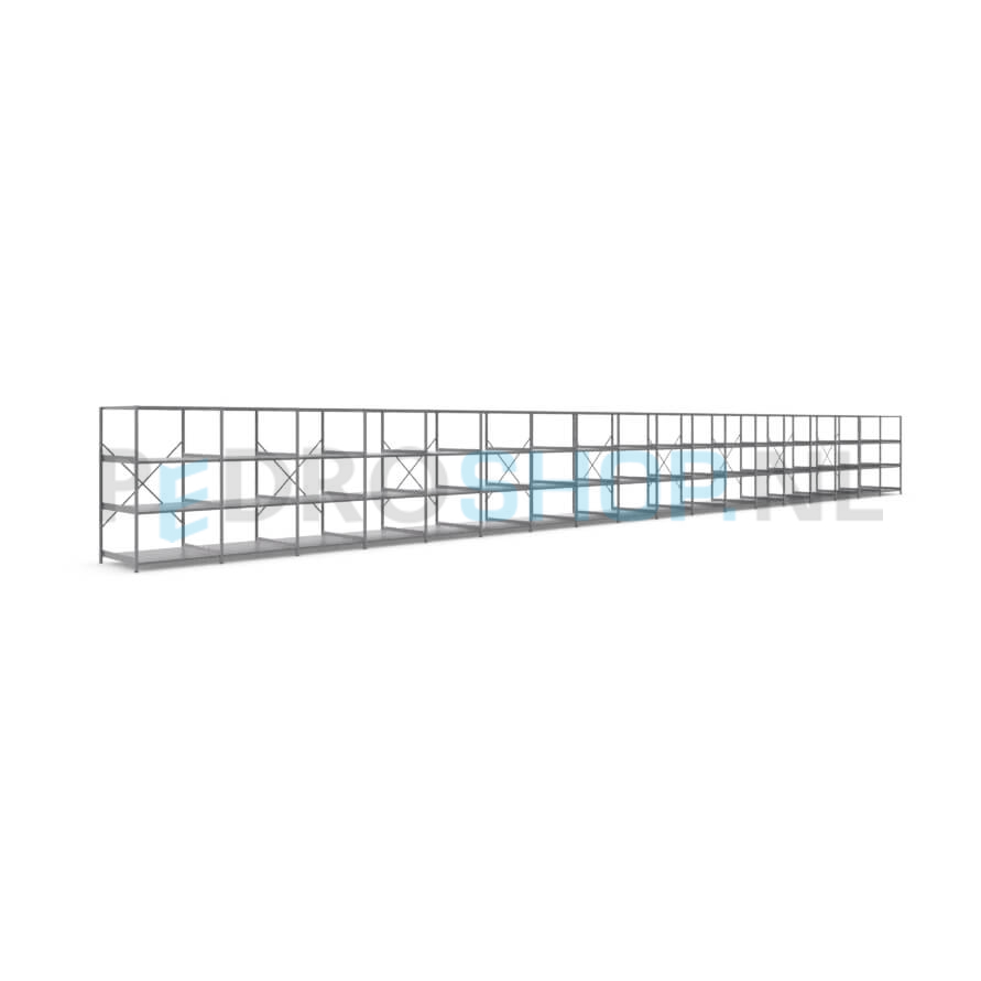 Metalen stellingkast: 180cm (h) x 100cm (d) x 1814.4cm (l)