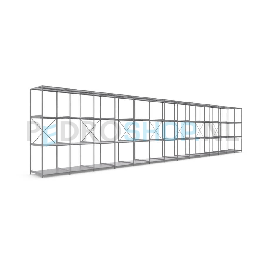 Metalen stellingkast: 300cm (h) x 100cm (d) x 1412cm (l)