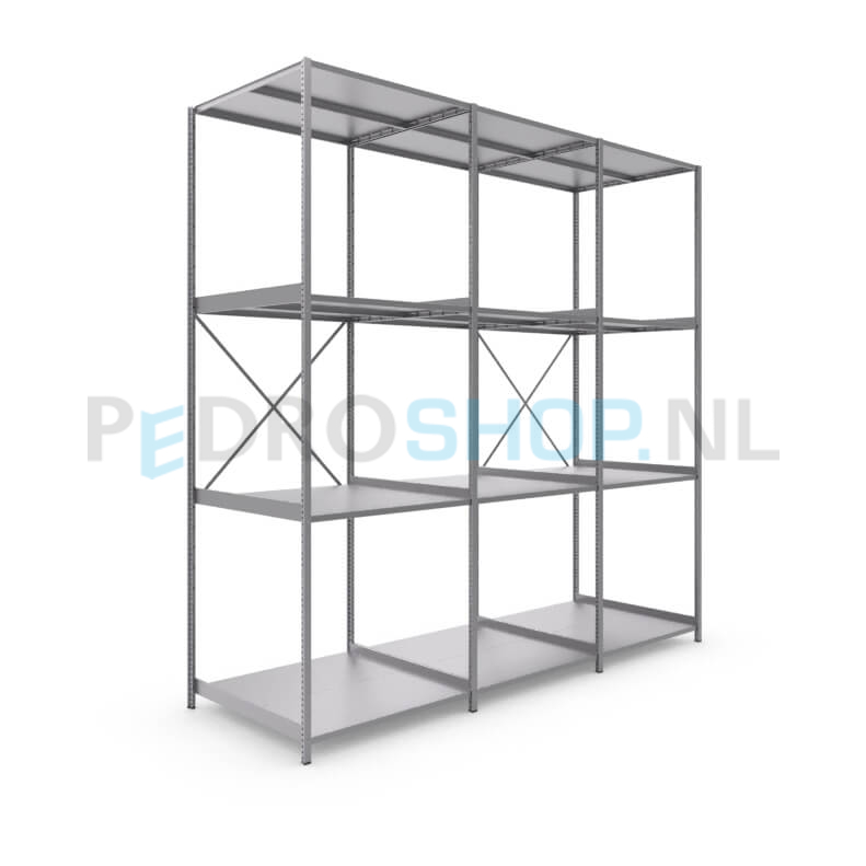 Met de GS-3 metalen stelling voor uw garage, magazijn of showroom kiest u voor een hoogwaardige kwaliteit metalen / ijzeren stellingkast. De GS-3 stijlen, GS-3 dragers, metalen GS-3 legborden en vele accessoires van de GS3 magazijnstelling worden gemaakt van hoogwaardig thermisch verzinkt staal (sendzimir). Kwaliteit gegarandeerd! De standaard onderdelen van de metalen GS3 stellingkasten zijn binnen enkele dagen leverbaar. Stel nu uw metalen magazijn rek stelling samen via onze handige configurator. In een aantal stappen kunt u online uw metalen stellingkast bestellen. Heeft u een groot magazijn in te richten met metalen legbord stellingen? Wij maken graag een passende offerte. Koop uw metalen rekken en stalen stellingen online bij Stellingspecialist.