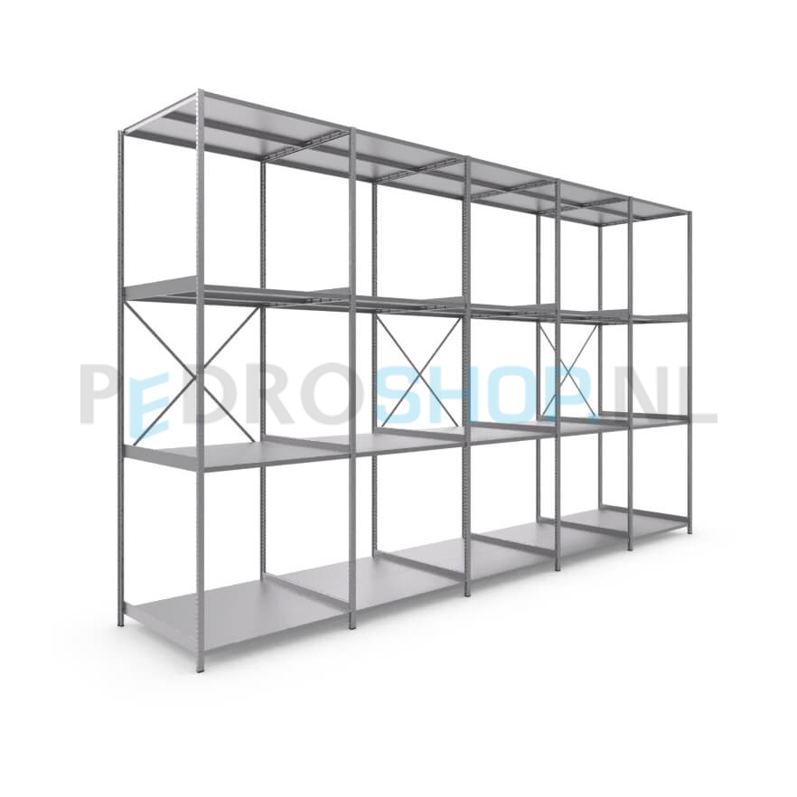 Metalen stellingkast: 300cm (h) x 100cm (d) x 506.6cm (l)