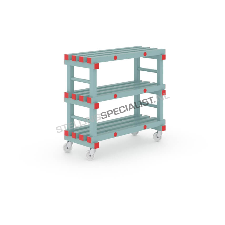 Kunststof stelling: 93cm (h) x 40cm (d) x 100cm (l)