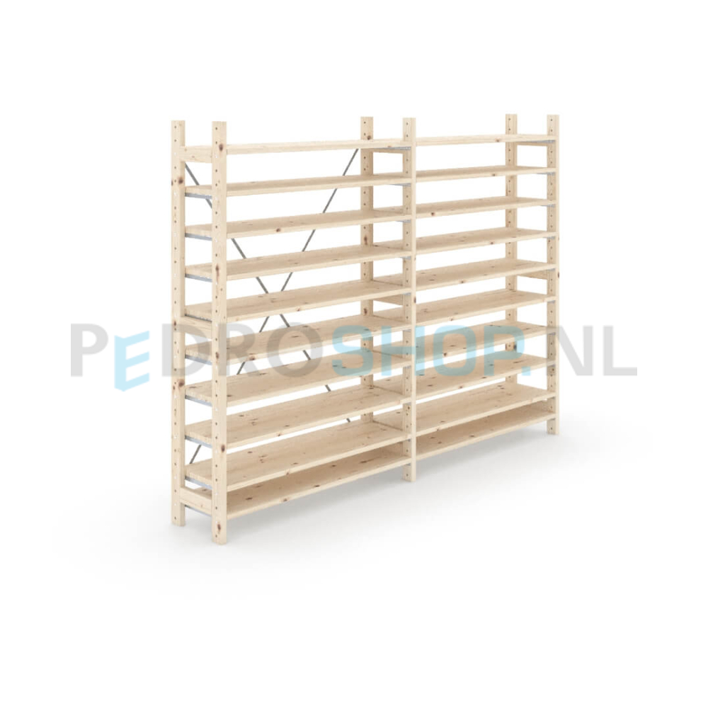 Eigen label houten stellingkast, dus goedkoop, flexibel en snel leverbaar! De onderdelen van de houten stellingen van ons eigen label zijn gemaakt van eersteklas Oost-Europees vurenhout en garanderen daarom jarenlang gebruiksgemak. Met de houten legbordstellingen en houten rekken kunt u uw magazijn eindeloos aanpassen, herinrichten en uitbreiden. U kiest voor betaalbare houten rekken, flexibiliteit met een goede kwaliteit! De houten stellingkast kunt u via onze handige configurator in een aantal stappen online samenstellen. Online uw houten stellingkast bestellen is nog nooit zo makkelijk geweest. Heeft u een groot archief in te richten met houten stellingen? Wij maken graag een passende offerte. Houten stelling kopen? Dan bent u bij ons aan het juiste adres.