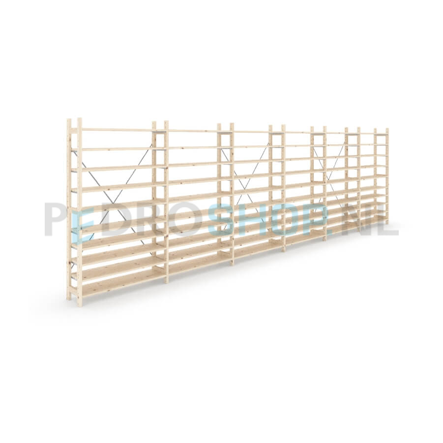 Houten stellingkast Easyrack: 180cm (h) x 30cm (d) x 603cm (l)