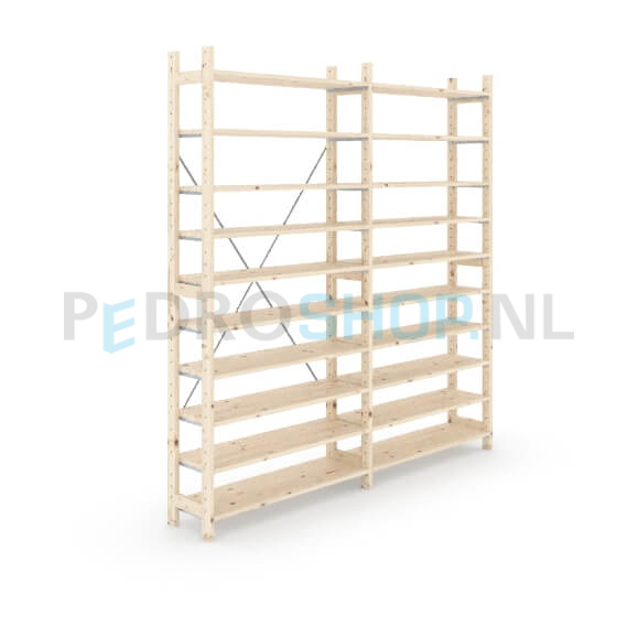 Eigen label houten stellingkast, dus goedkoop, flexibel en snel leverbaar! De onderdelen van de houten stellingen van ons eigen label zijn gemaakt van eersteklas Oost-Europees vurenhout en garanderen daarom jarenlang gebruiksgemak. Met de houten legbordstellingen en houten rekken kunt u uw magazijn eindeloos aanpassen, herinrichten en uitbreiden. U kiest voor betaalbare houten rekken, flexibiliteit met een goede kwaliteit! De houten stellingkast kunt u via onze handige configurator in een aantal stappen online samenstellen. Online uw houten stellingkast bestellen is nog nooit zo makkelijk geweest. Heeft u een groot archief in te richten met houten stellingen? Wij maken graag een passende offerte. Houten stelling kopen? Dan bent u bij ons aan het juiste adres.
