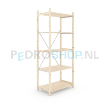 Eigen label houten stellingkast, dus goedkoop, flexibel en snel leverbaar! De onderdelen van de houten stellingen van ons eigen label zijn gemaakt van eersteklas Oost-Europees vurenhout en garanderen daarom jarenlang gebruiksgemak. Met de houten legbordstellingen en houten rekken kunt u uw magazijn eindeloos aanpassen, herinrichten en uitbreiden. U kiest voor betaalbare houten rekken, flexibiliteit met een goede kwaliteit! De houten stellingkast kunt u via onze handige configurator in een aantal stappen online samenstellen. Online uw houten stellingkast bestellen is nog nooit zo makkelijk geweest. Heeft u een groot archief in te richten met houten stellingen? Wij maken graag een passende offerte. Houten stelling kopen? Dan bent u bij ons aan het juiste adres.