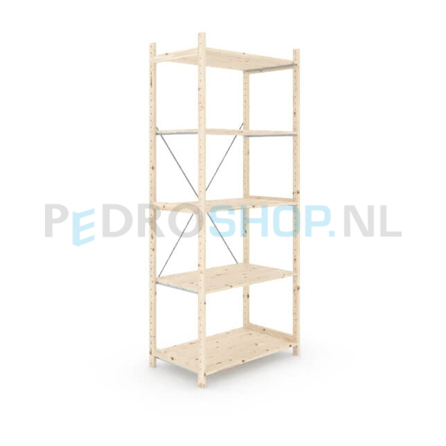 Eigen label houten stellingkast, dus goedkoop, flexibel en snel leverbaar! De onderdelen van de houten stellingen van ons eigen label zijn gemaakt van eersteklas Oost-Europees vurenhout en garanderen daarom jarenlang gebruiksgemak. Met de houten legbordstellingen en houten rekken kunt u uw magazijn eindeloos aanpassen, herinrichten en uitbreiden. U kiest voor betaalbare houten rekken, flexibiliteit met een goede kwaliteit! De houten stellingkast kunt u via onze handige configurator in een aantal stappen online samenstellen. Online uw houten stellingkast bestellen is nog nooit zo makkelijk geweest. Heeft u een groot archief in te richten met houten stellingen? Wij maken graag een passende offerte. Houten stelling kopen? Dan bent u bij ons aan het juiste adres.